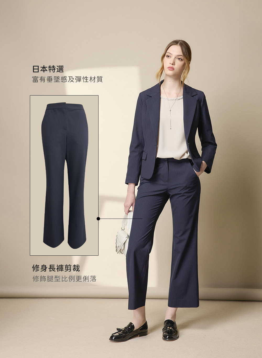 • 修身長褲剪裁,修飾腿型比例更俐落