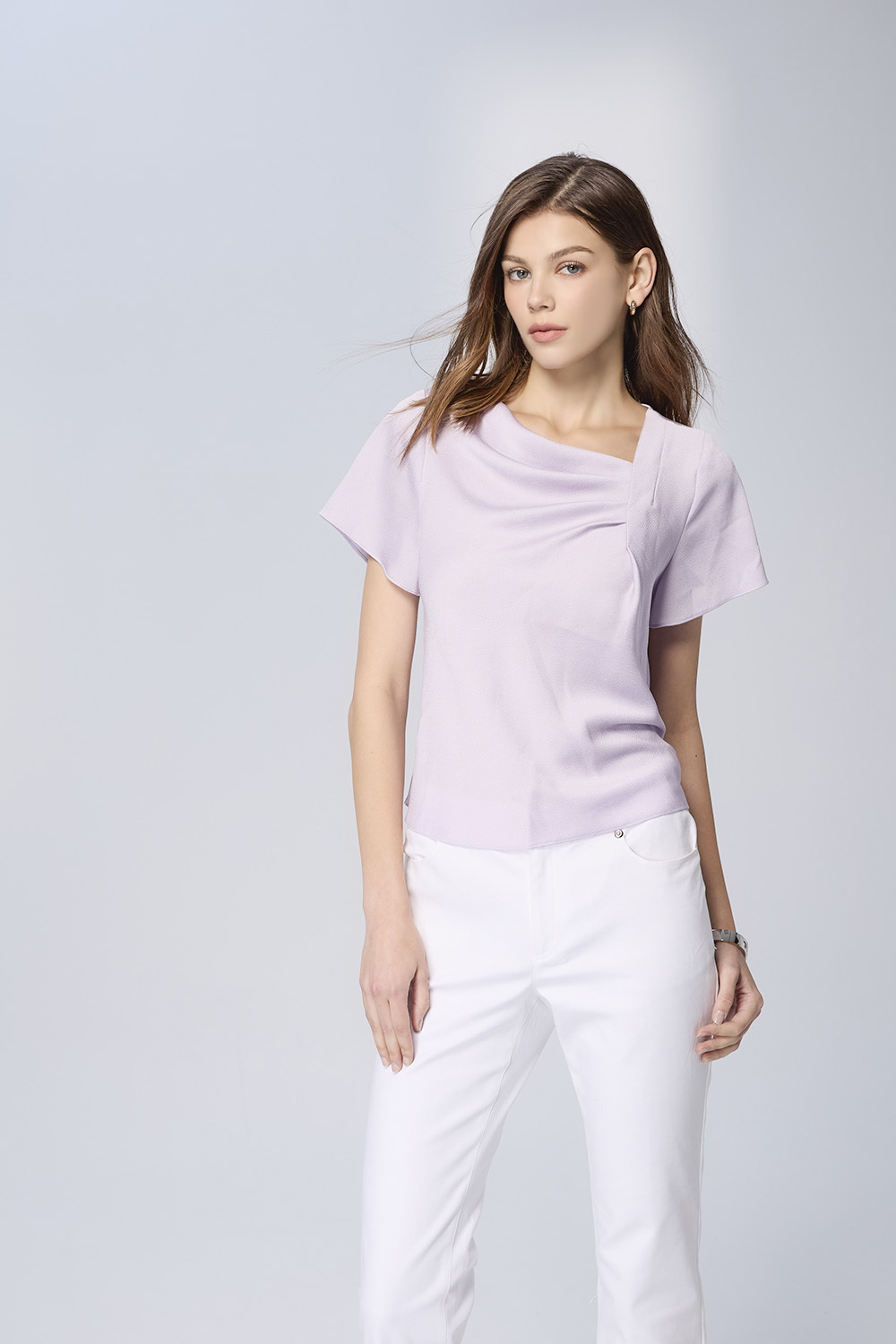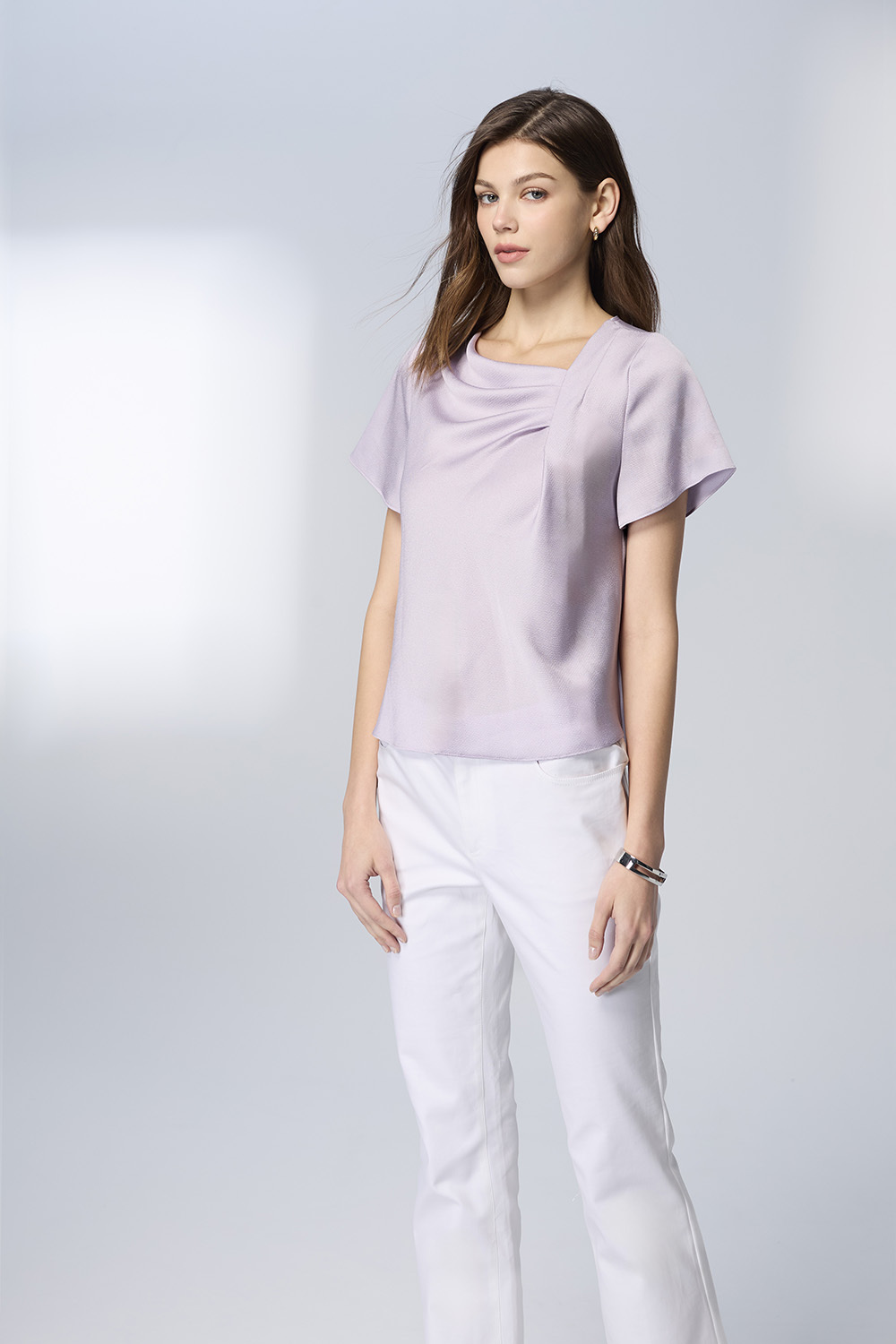|光澤織感 × 非對稱領口 × 都會優雅剪裁|