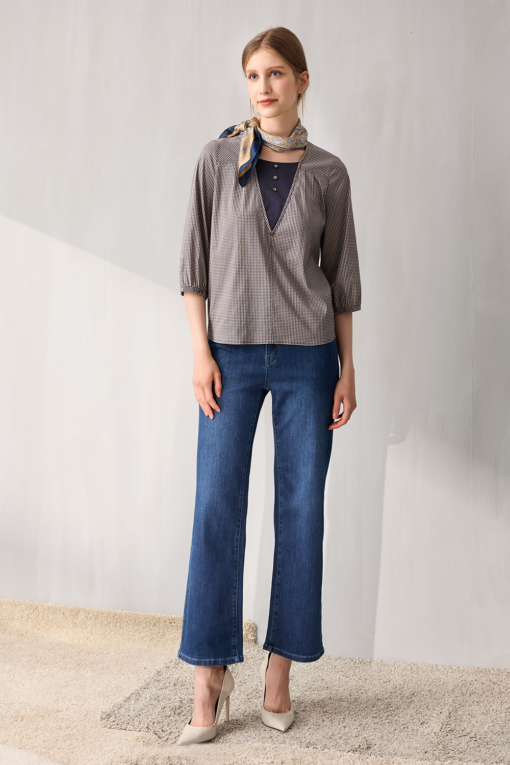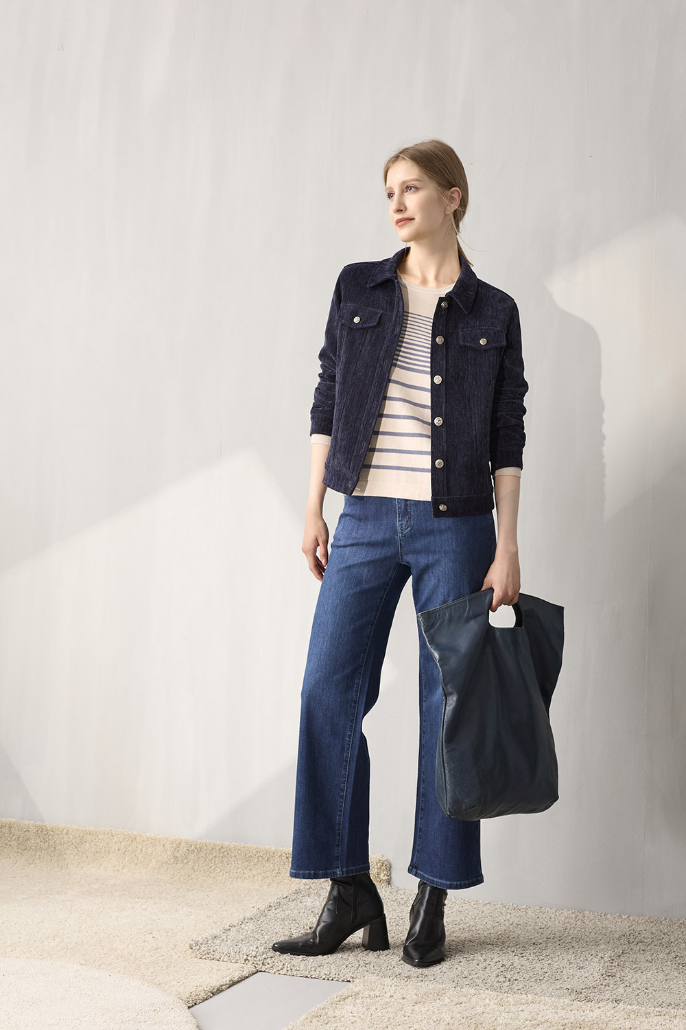 經典丹寧布料搭配水洗效果,展現自然層次感,簡單搭配素色上衣或襯衫,就能營造俐落又時髦的日常造型