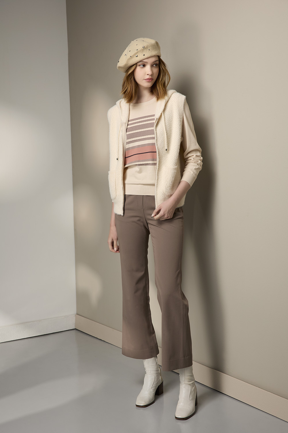• 天竹纖維與聚酯混紡,質感柔滑、透氣親膚,又保有適合秋冬的厚度與保暖度