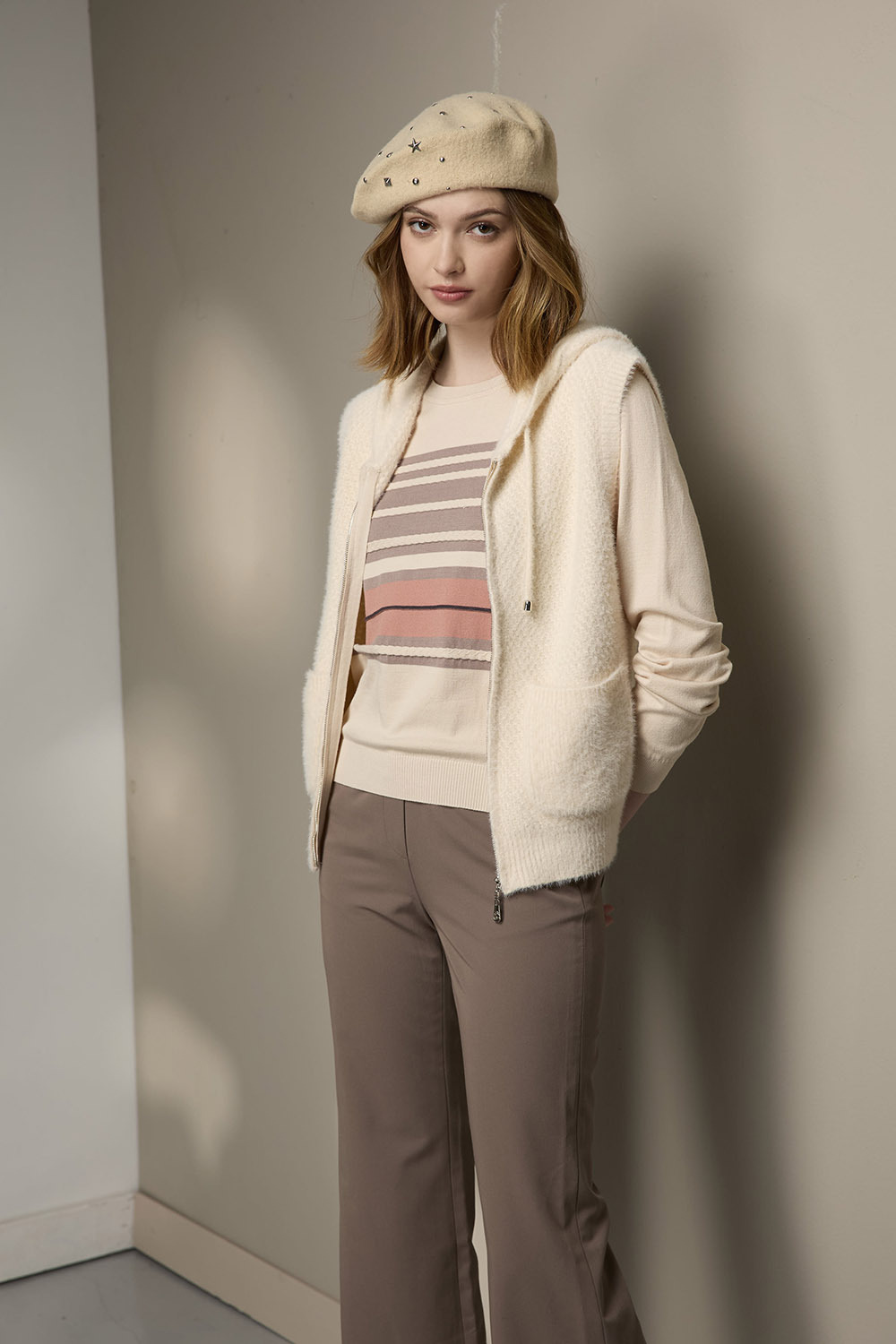 中性色與沉穩的撞色條紋交錯,展現出知性、都會感的氛圍