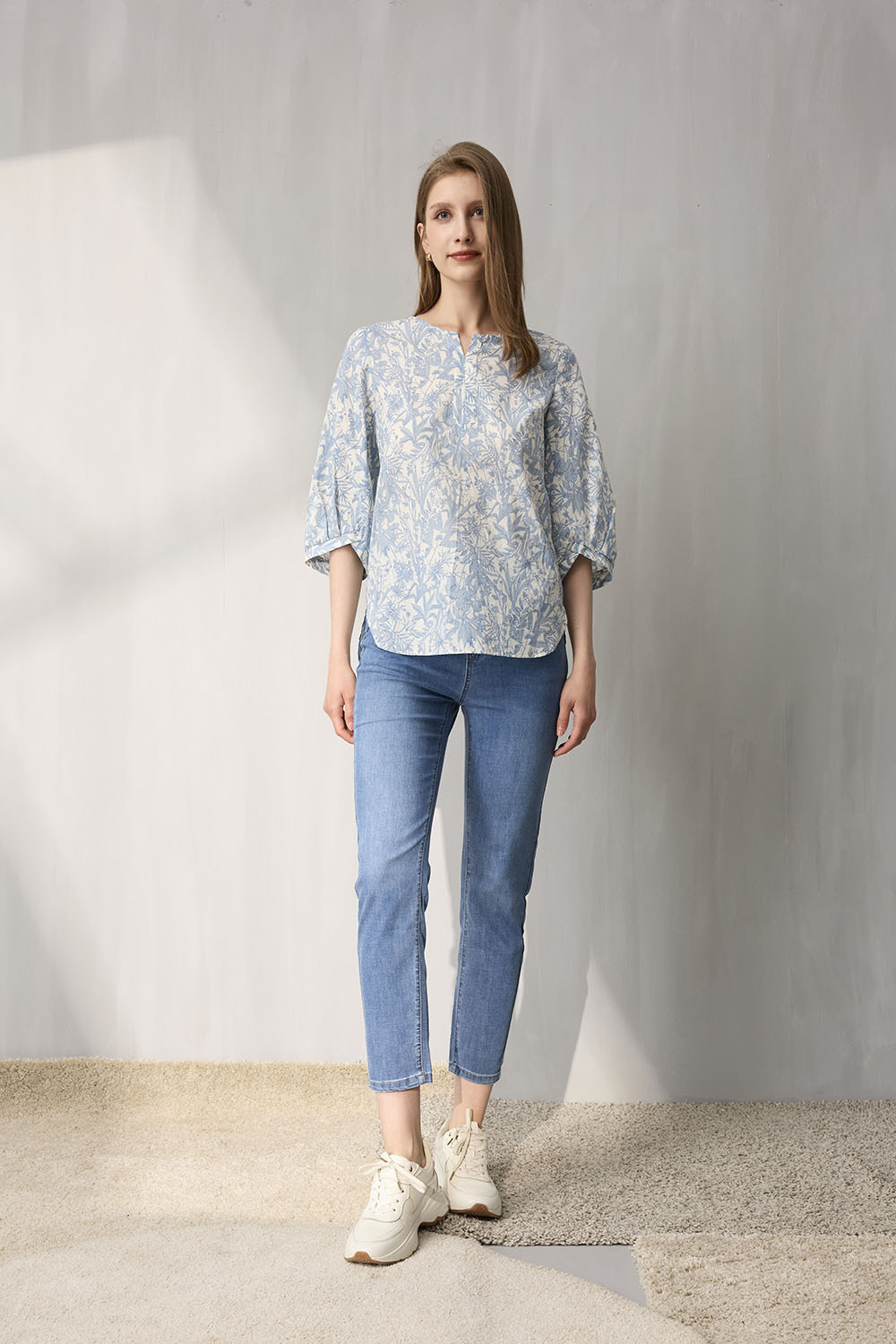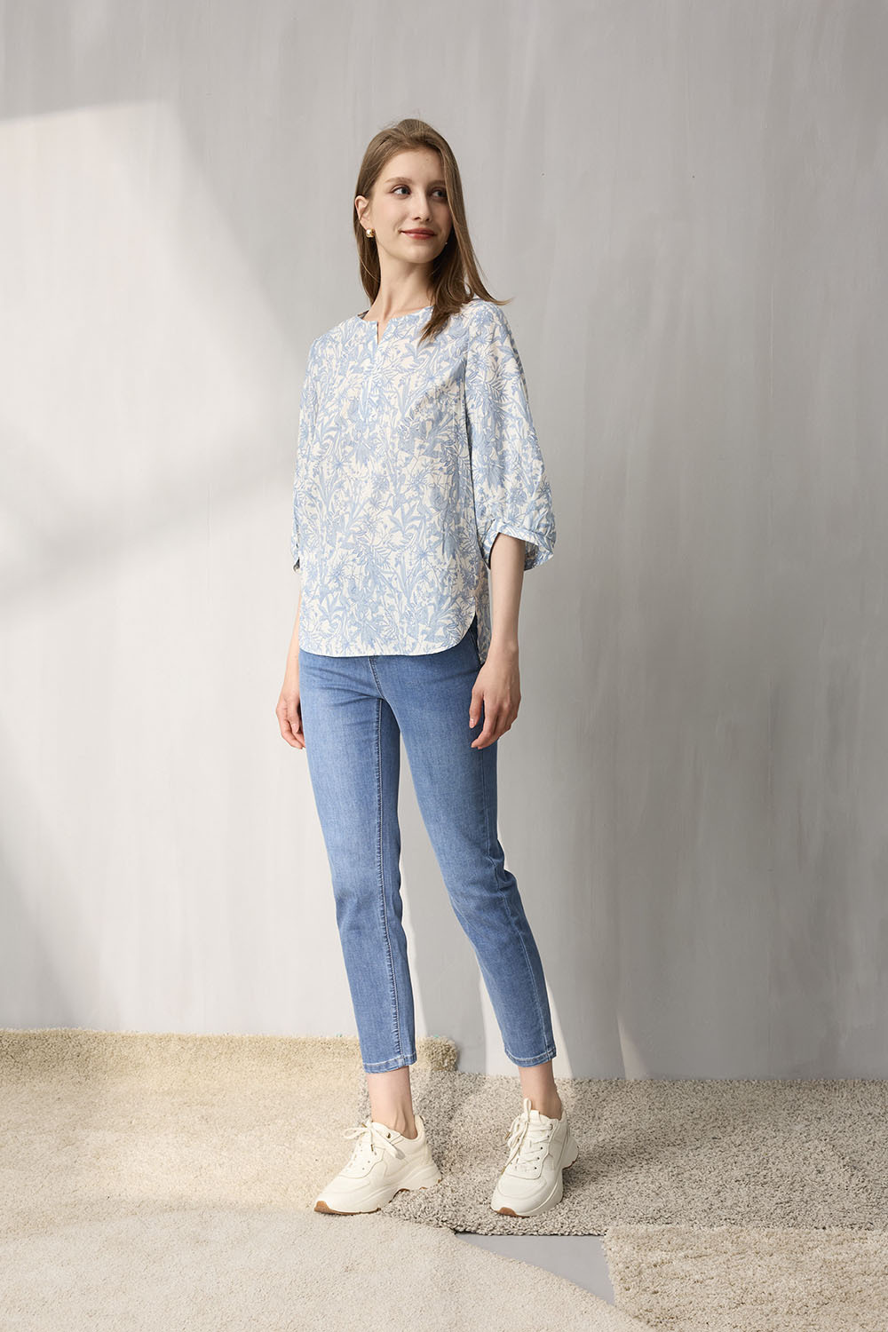 自然水洗藍色調呈現輕鬆休閒氛圍,無論搭配襯衫、針織或簡約T恤,都能輕鬆完成日常與通勤的舒適穿搭。