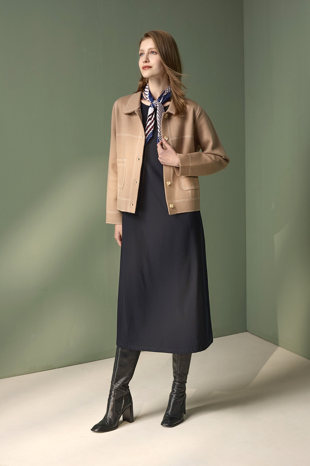 以俐落直順的線條搭配簡潔圓領設計,展現「職場輕美學」精神,無論是會議、商務聚會或日常辦公,都能呈現專業與優雅兼具的氛圍