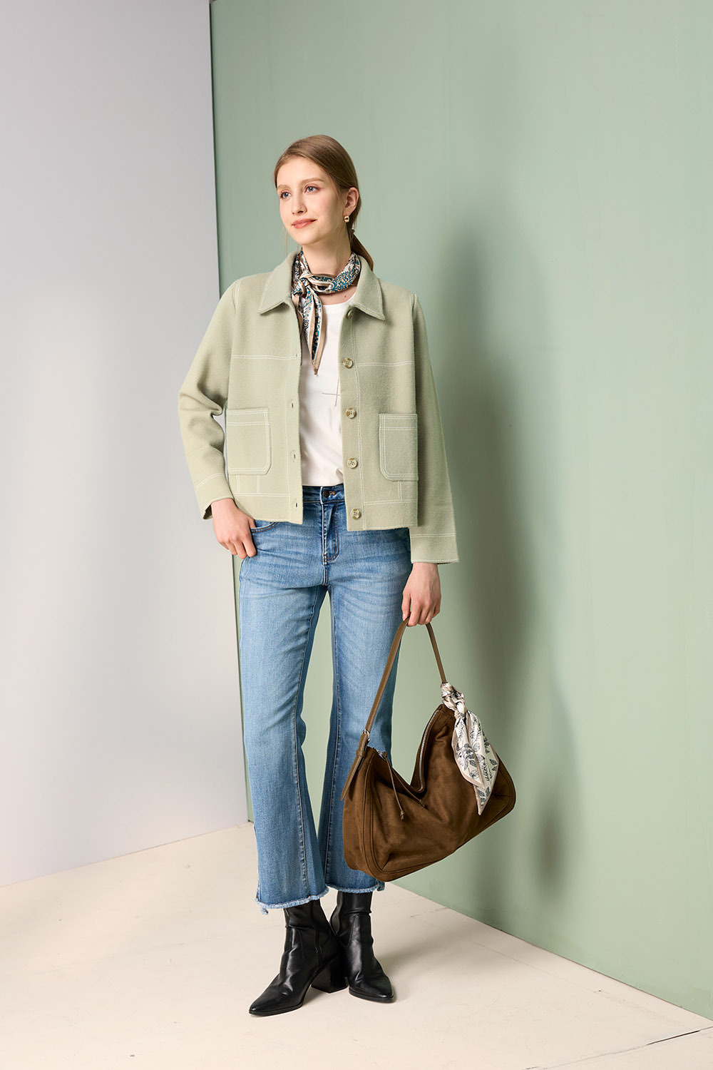 • 水洗刷色層次分明,呈現出率性與優雅兼具的氛圍,是一件能陪伴日常生活又能在職場中自在駕馭的百搭單品