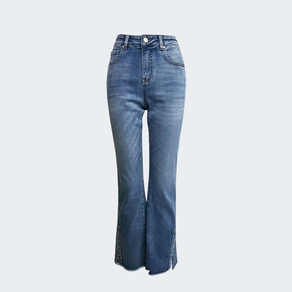 漸層水洗藍調 × 側邊開衩設計 × 微喇叭版型