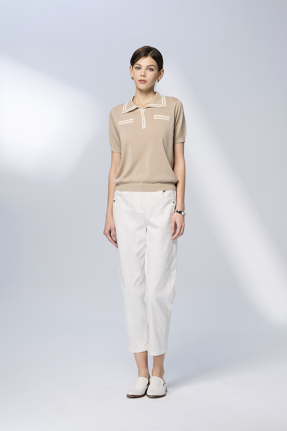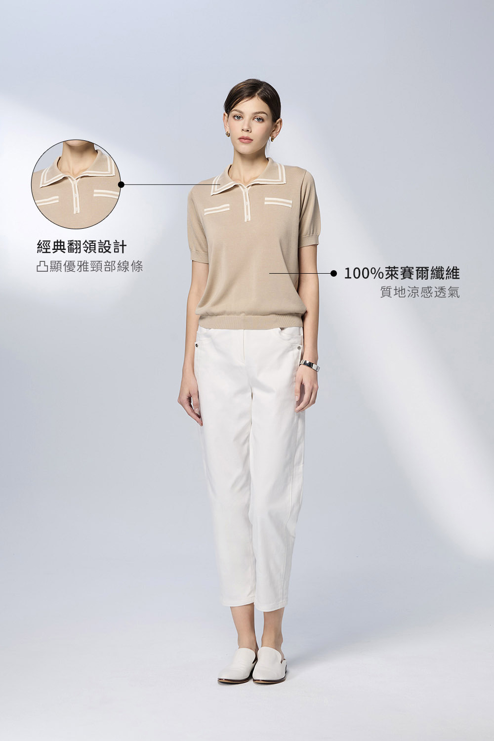 • 經典翻領設計,襯托優雅頸部線條