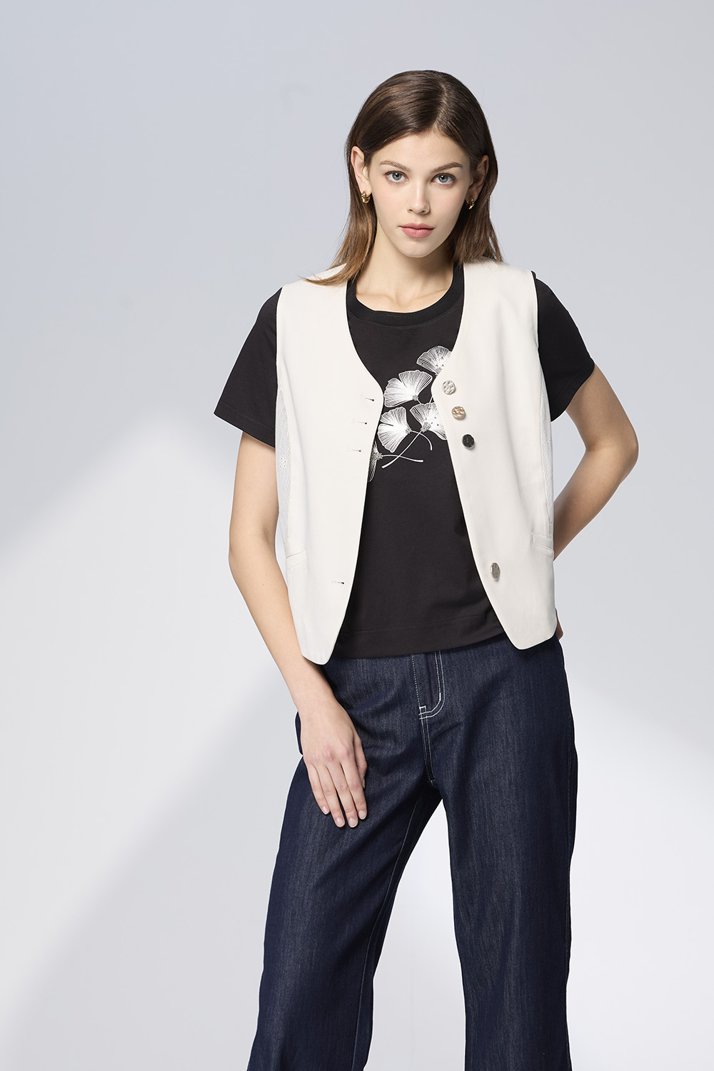 背心版型修身不貼身,適合疊搭T恤或洋裝增加層次感,讓日常搭配更有造型重點