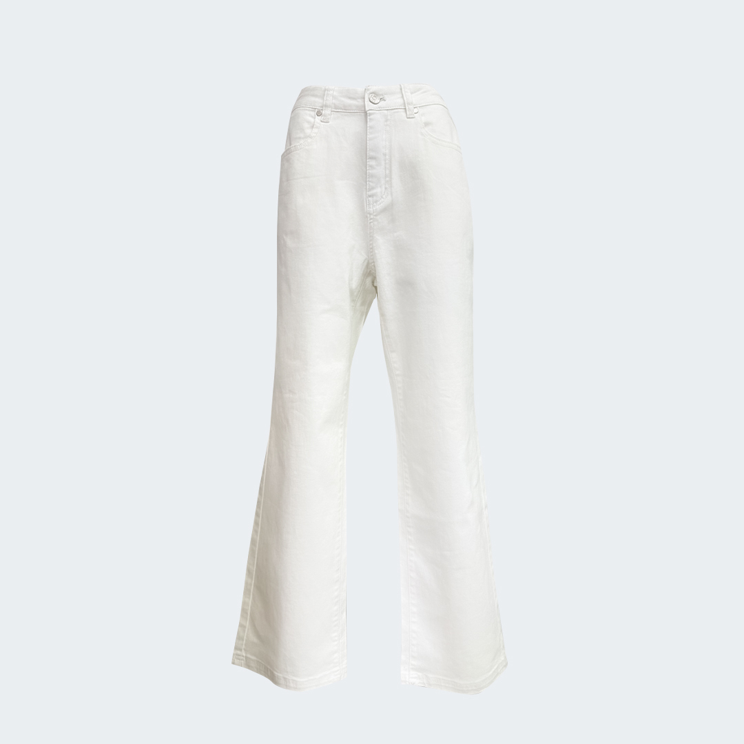 【2025 優雅率性主題】後腰鬆緊設計帶來自在包覆感,搭配小喇叭剪裁修飾腿型線條,呈現柔中帶俐落的優雅輪廓;百搭白色款式,輕鬆駕馭各種日常造型