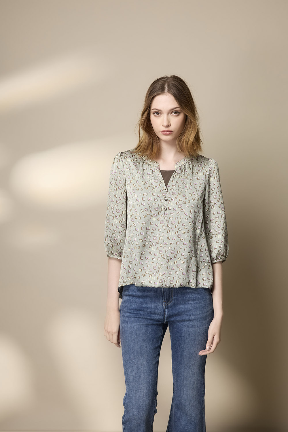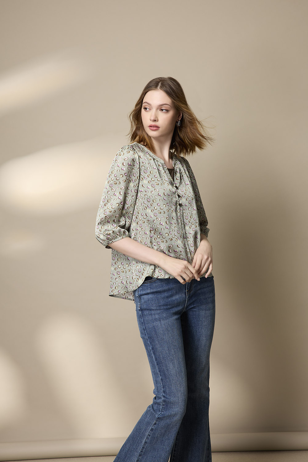 以「甜甜圈感的微豹紋印花」布料為視覺焦點,兼具趣味與時髦感,讓日常穿搭不再單調