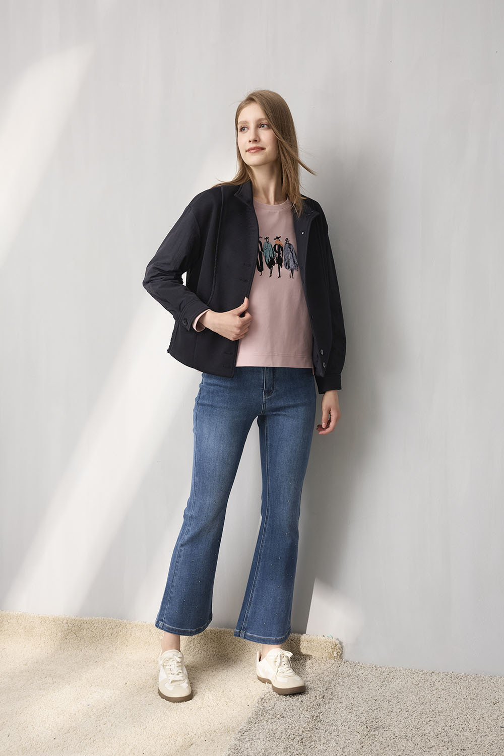布面輕盈耐穿,兼具挺度與舒適度。俐落短版剪裁,線條簡潔不顯厚重,適合日常與通勤穿搭。輕鬆搭配上衣與褲裝,展現自在有型的都會休閒風格。