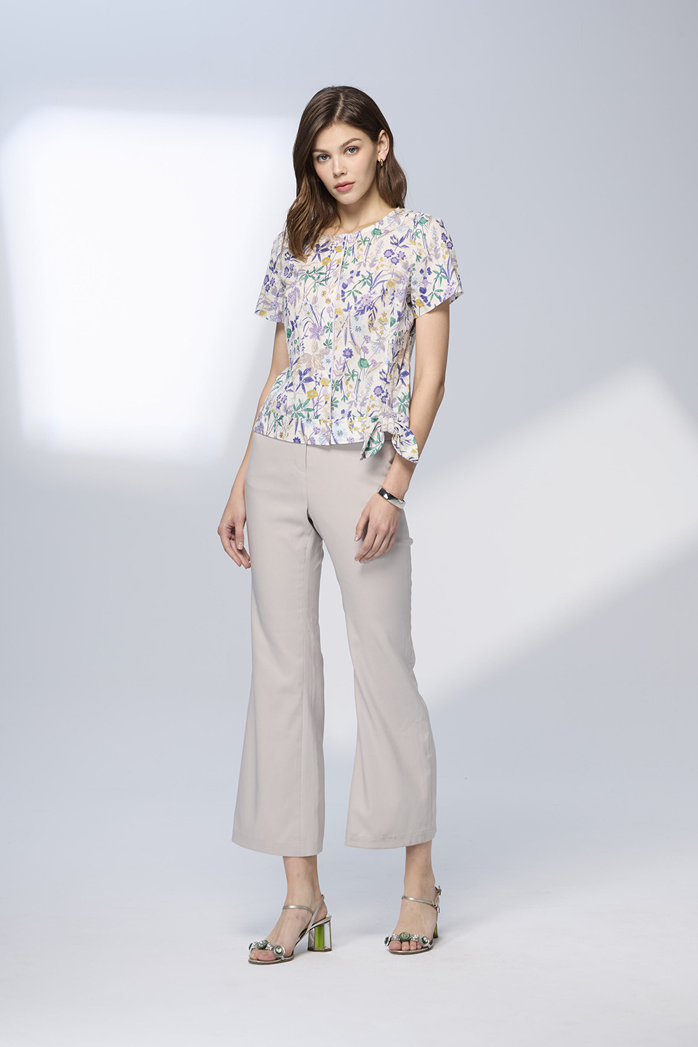 【2025 盛夏花園主題】清新花卉印花搭配前門襟與下擺綁結設計,輕鬆轉換襯衫與罩衫兩種風格;以100%日本棉布打造天然透氣穿著感,為春夏穿搭注入優雅活潑的花園氣息