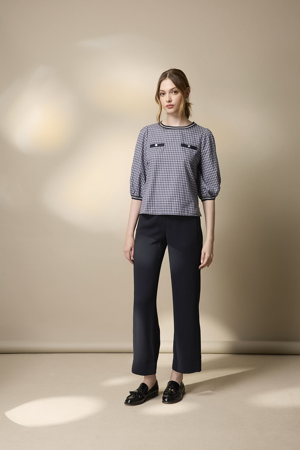 褲腳做微寬不喇叭的俐落線條,不僅修飾腳踝,也更容易搭配鞋款,從通勤皮鞋、樂福鞋到輕休閒小白鞋,都能自然融入造型