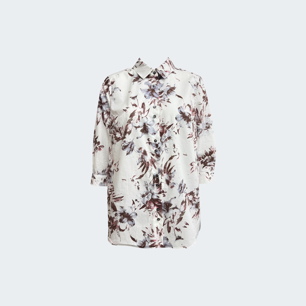 水彩感花卉印花以柔和色調呈現,低調中展現細膩層次。