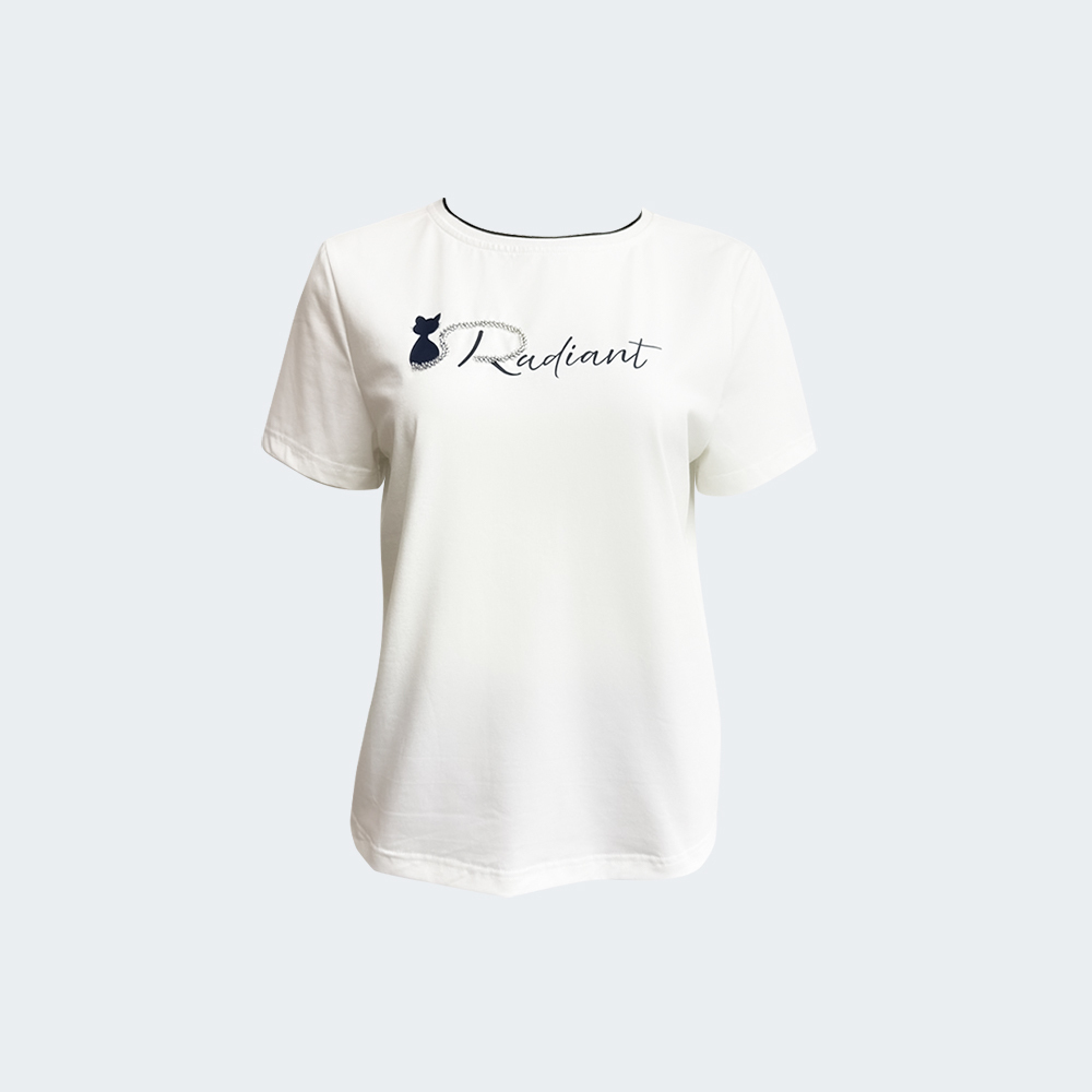 搭配「Radiant」自信字樣與剪影圖案,低調中展現光彩,簡單就很有態度